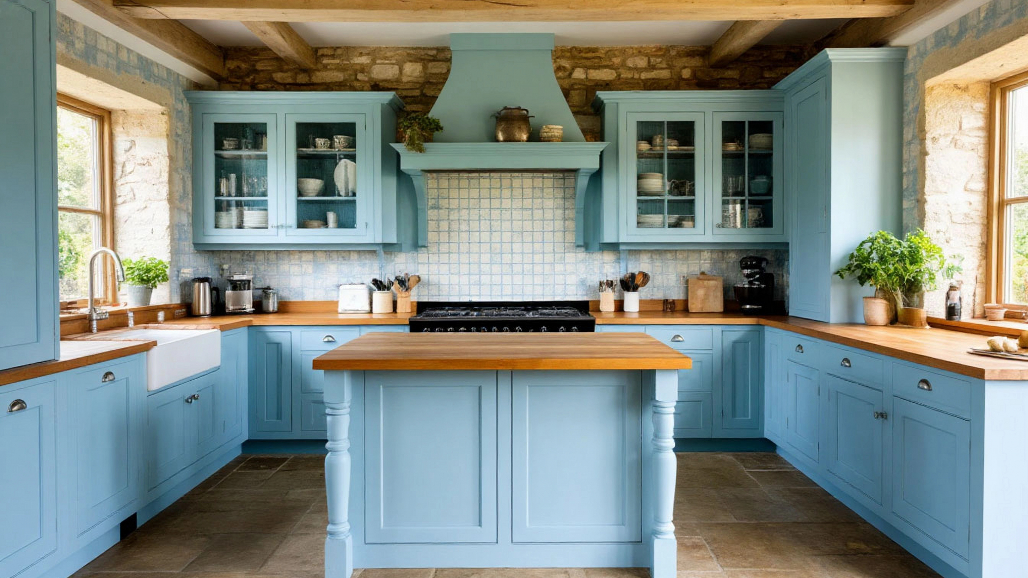 Кухня в голубом цвете прекрасно сочетается с природными материалами — деревом, камнем, льном. Поэтому "Аквиллу" можно оформить как в деревенском доме, так и в городской квартире, добавив несколько деталей: живые цветы, плетёные корзины, мягкие занавески, резные стулья или открытые полки с посудой. Каждый элемент подчеркнёт естественность и создаст неповторимое ощущение домашнего тепла.