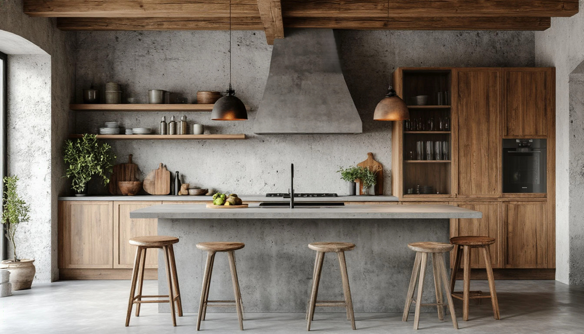 Каждая линия кухни "Бетвуд" продумана до мелочей. Здесь нет ничего лишнего, но каждая деталь имеет смысл. Прямые формы, лаконичные фасады, ровные поверхности и продуманная фурнитура создают ощущение пространства, где всё на своём месте. Эта кухня не требует декоративных излишеств — она красива своей структурой, материалом и пропорциями. Свет, падая на бетонную фактуру, подчеркивает игру теней, а дерево, с его теплыми переливами, придает помещению живость и уют. В результате рождается интерьер, в котором хочется задержаться, где даже самые будничные дела становятся осмысленными и спокойными.