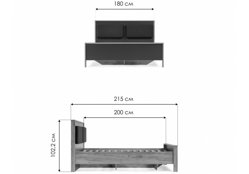 Кровать Тхан 180х200 дуб крафт золотой / антрацит ().