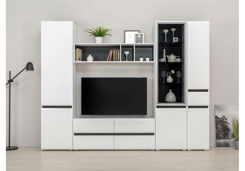 ТВ-тумбы Сейдиль белый премиум / черный / белый глянец (129,9x41,3x52,4).
