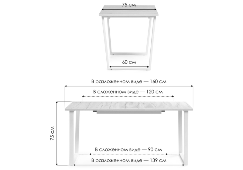 Стол деревянный раскладной Лота Лофт 120 25 мм юта / белый матовый (75x75).