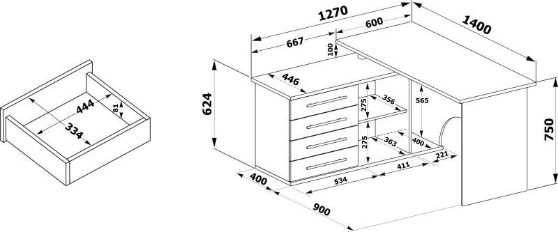 Компьютерный стол КСТ-109 127х140х75 левый белый (140x75).