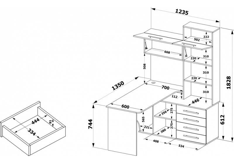 Компьютерный стол КСТ-14.1П белый правый (182,8).